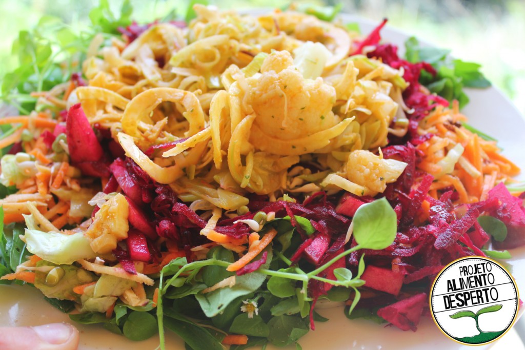 Inserindo mais alimentos vivos através de saladas completas é outra forma de o fazer. Sendo que estas saladas poderão acompanhar outras refeições habituais. Estas saladas podem ser preparadas com diferentes legumes e vegetais, cheias de cores e diferentes sabores. São uma excelente forma de nutrir o corpo com minerais, enzimas e vitaminas que me deixam saciado.